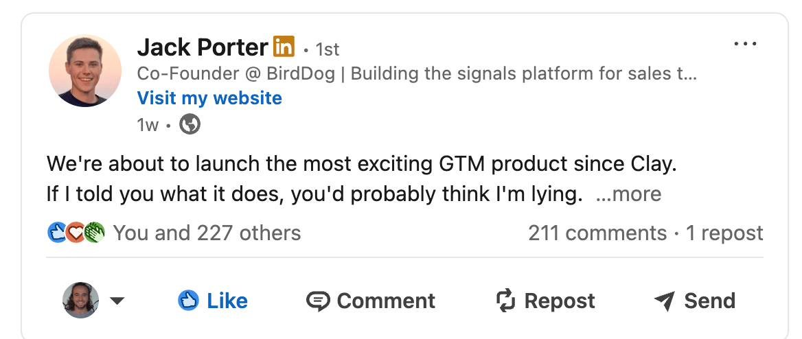 Unlike Chad, Brad gave Jack a lot of unsolicited advice. Brad spoke with a religious fervor about how great his go to market strategy was and how BirdDog should absolutely copy him to get really incredible asymmetric growth.